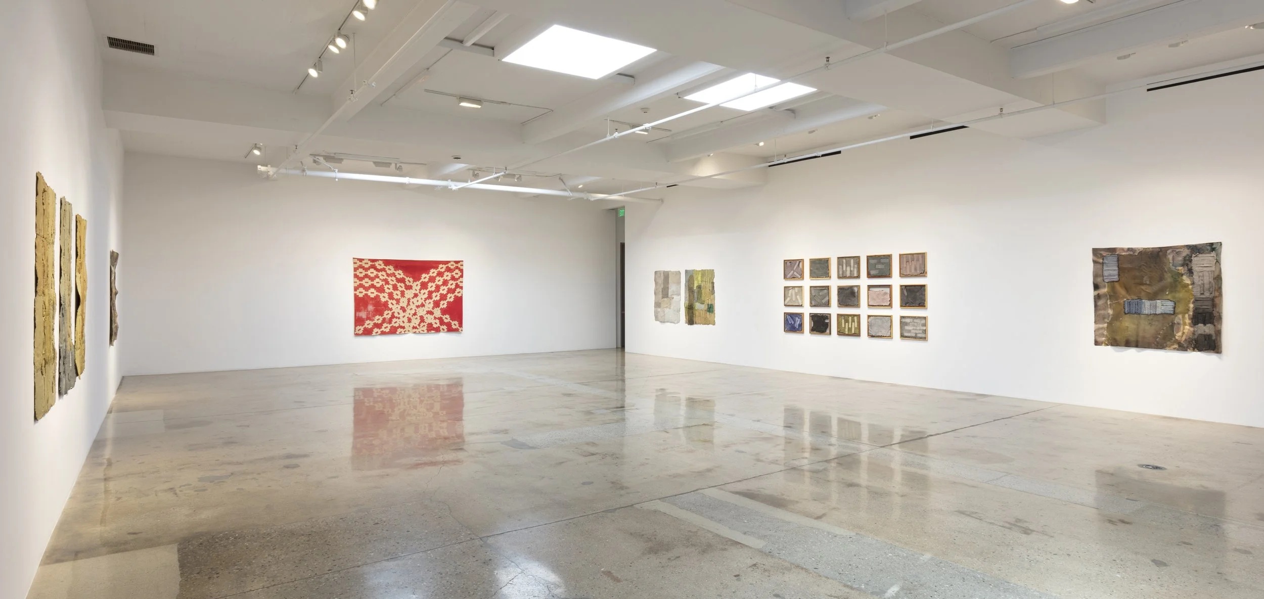 Steve Turner is pleased to present THE DIRT THAT BINDS ME, a solo exhibition by Los Angeles-based Aryana Minai that features new abstract paintings that are composed of recycled paper and inspired by the patterns and textures of Islamic and vernacular architecture that she experienced during her childhood in Iran. Minai recalls many family excursions to historic architectural monuments throughout the country. Old palaces in Isfahan or Shiraz decorated with tiles, bricks, reliefs and wallpaper remain vivid in Minai’s memory and are a critical link to her past. She also acknowledges the importance of seeing craftspeople at work on her frequent walks between home and school in Tehran. Carpet weavers, illuminators of Persian miniatures, potters, calligraphers and artisans of Khatam-Kari (geometric inlay in bone and wood) were wonderful distractions to her and they inform her creative processes to this day. Minai favors materials that have a past life and can be recycled into something new. Many of her new works are made from recycled scraps of paper supplied by friends–paper plates and cups from social gatherings and protest meetings–as well as her own daily accumulation that she breaks down into pulp. Found bricks are then used as tools to emboss the dyed pulp as it dries and the final works are mounted to the screens that she used to make the pulp. The embossing is akin to the marks absorbed by buildings, the imprints of our existence.